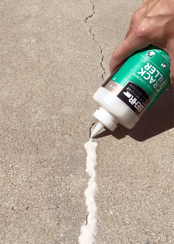 BEHR PREMIUM® Concrete Crack Filler — seals and repairs cracks up to 1/2" wide on horizontal concrete.