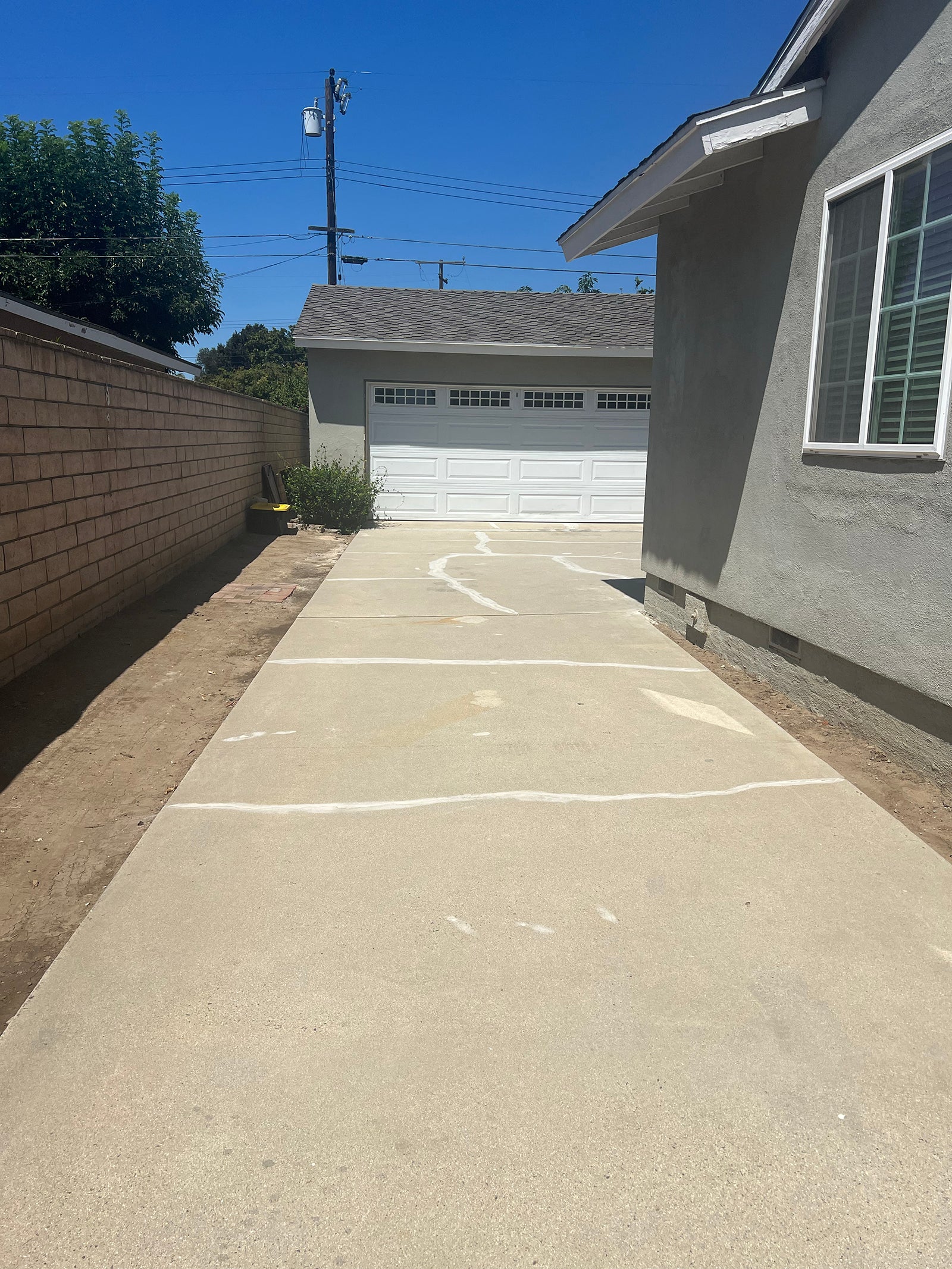 Start by thoroughly cleaning the concrete surface with concrete cleaner, a broom, or pressure washer. If you have a fresh water supply (garden hose) hand wash the concrete off removing all dirt, grime, and other debris. If there are oil stains use a small amount of mild detergent or soap and scrub the surface of those stains and thoroughly rinse clean. We also recommend using Like-Nu Oil Stain Remover. If you don't have a clean water supply use a broom, and sweep off all the dirt, dust and other debris. The cleaner the surface the better the material it absorbs and bonds.
